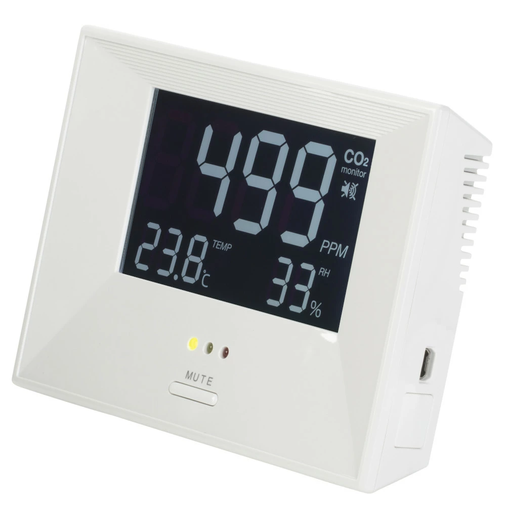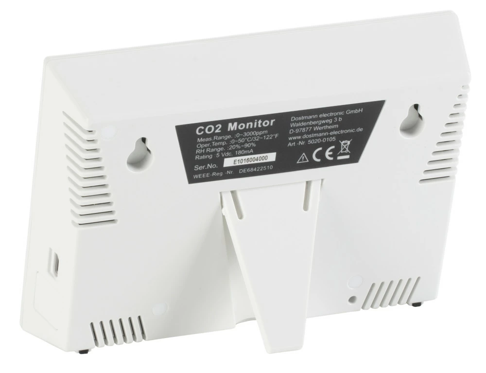 Der Monitor zeigt auf einem gut lesbaren Display den CO2-Gehalt der Raumluft an. Eine farbige Ampelanzeige unter dem Display wechselt je nach Luftqualität von Grün über Gelb zu Rot. Zusätzlich werden Sie über Temperatur und Luftfeuchtigkeit informiert. Es besteht die Möglichkeit, einen Alarm einzustellen.