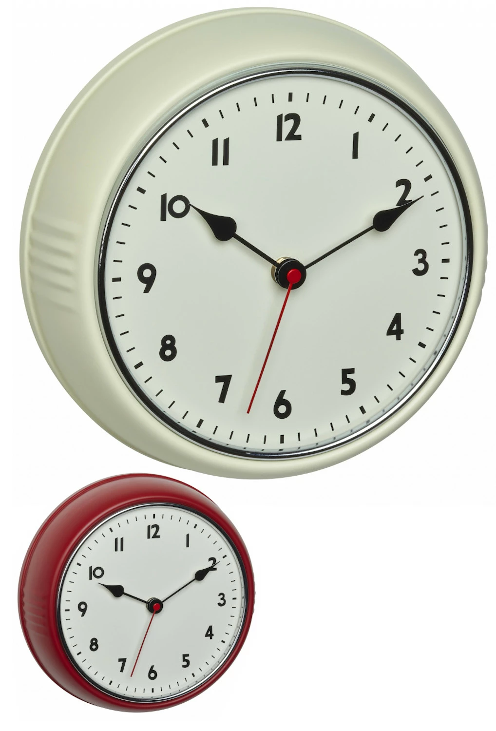 Mit dieser Retro Funk Wanduhr von haben Sie immer die aktuelle Zeit im Blick. Der zeitlose elegante Retro-Look passt ideal in trendige Küchen oder Wohnzimmer. Die Uhr ist aus Metall und besitzt eine wertige Glasabdeckung.