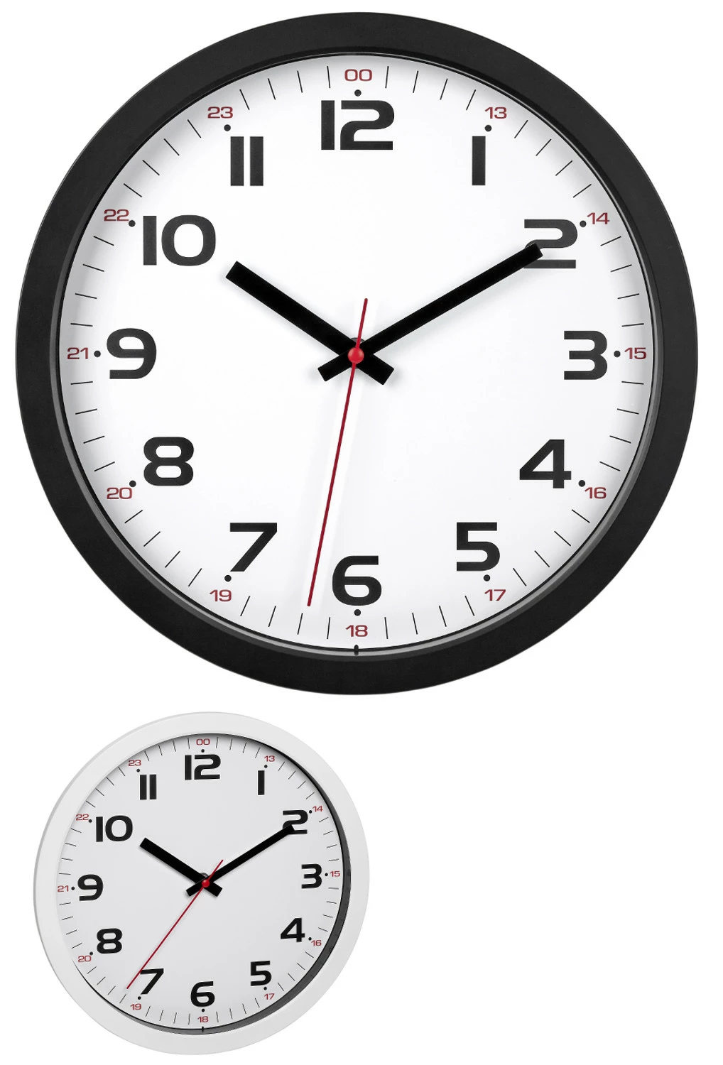 Das besondere an dieser Wanduhr sind die 12 und 24 Stunden Markierungen. Die großen, schwarzen Zahlen zeigen die ersten 12 Stunden des Tages an, die kleineren roten Zahlen beziehen sich auf die Stunden nach 12 Uhr mittags. So haben Sie für jede Stunde des Tages immer die richtige Uhrzeit im Blick. Die analoge Wanduhr ist trotz des schlichten Designs ein echter Hingucker.