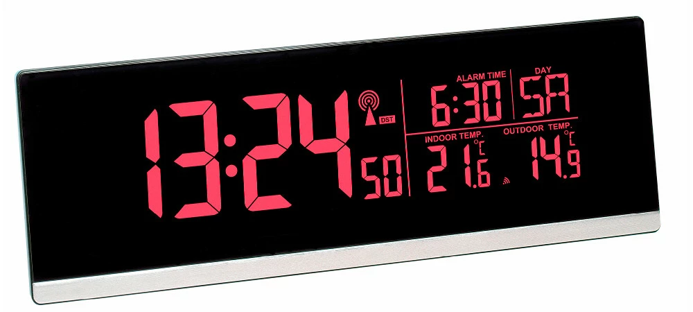 Mit dem MULTI-COLOR Funk-Wecker bekommen Sie alle Informationen in Farbe: Wählen Sie zwischen dem automatischen Farbmodus, in dem die Displayfarbe in sanften Übergängen durch 70 Farbnuancen wechselt oder entscheiden Sie sich für eine feste Farbe. Die Helligkeit des Displays lässt sich in 2 Stufen regulieren. Der Funk-Wecker empfängt die Uhrzeit über das von der Atomuhr ausgesendete DCF77 Signal. Damit haben Sie stets die aktuelle Uhrzeit im Blick und werden pünktlich geweckt. Und wenn Sie einmal nicht gleich aufstehen möchten, können Sie sich mit der Snooze-Funktion ein paar Minuten später noch mal wecken lassen. Schon gleich nach dem Aufwachen wissen Sie, welche Kleidung heute angesagt ist und ob Sie vielleicht ihre vereisten Autoscheiben frei kratzen müssen, denn die Außentemperatur wird über einen eigenen Funksender ermittelt und auf dem Wecker wiedergegeben. Dazu informiert der Funk-Wecker über das aktuelle Datum und den Wochentag, hier haben Sie die Möglichkeit zwischen 7 Sprachen zu wählen. Zur Kontrolle des Raumklimas wird immer die aktuelle Innentemperatur am Aufstellort angezeigt. Besonders praktisch ist die USB Ladefunktion. So können Sie Ihr Smartphone über Nacht aufladen und haben es gleich zur Hand.