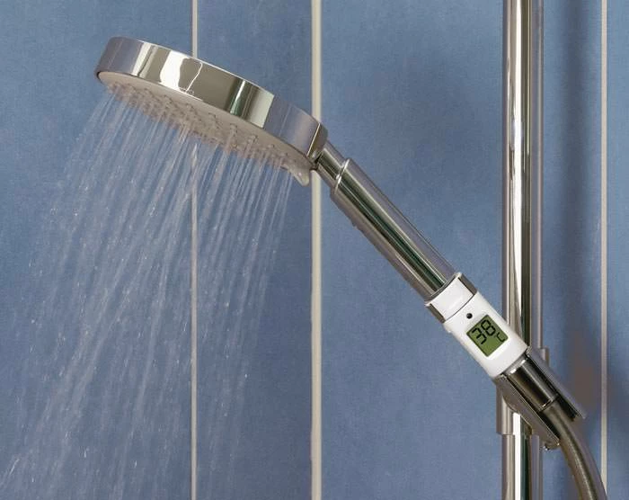 Dieses Duschthermometer spart ihnen den nachträglichen Einbau eines Thermostates.