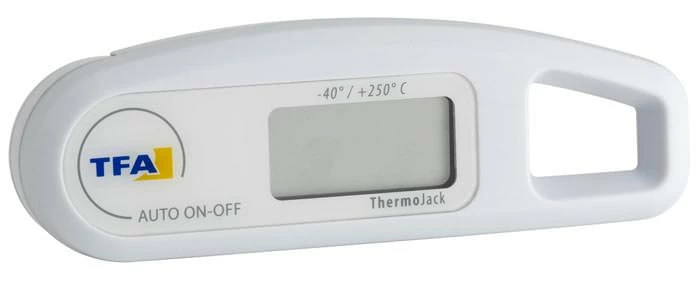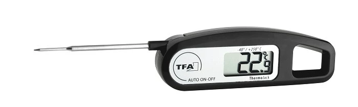 Dieser Einstichthermometer ist besonders anwenderfreundlich, da der spitzige Messfühler eingeklappt werden kann und somit ein handliches Messgerät entsteht,