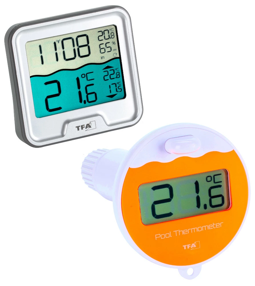 Mit dem modernen Funk Thermometer Marbella können Sie jederzeit die Wassertemperatur in Ihrem Pool oder Teich kontrollieren und das bequem von Ihrem Wohnraum aus.