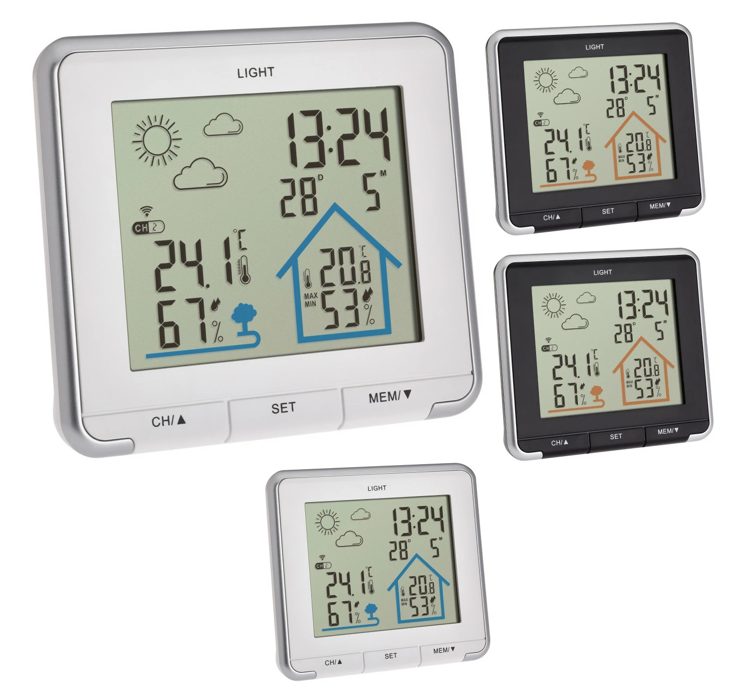 Die Life Funkwetterstation versorgt Sie mit nützlichen Informationen rund um Haus und Garten. Auf dem übersichtlichen Display findet man sich sofort zurecht. Unter der Uhrzeit mit Datum erscheint das Raumklima im farbigen Häuschen. Außentemperatur und Luftfeuchtigkeit werden mit einem stilisierten Baum gekennzeichnet und Symbole zeigen die aktuellen Wetterbedingungen an.