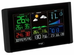 Ein integriertes elektronisches Barometer misst den Luftdruck und das farbige Wetterbild gibt eine Prognose für das kommende Wetter.