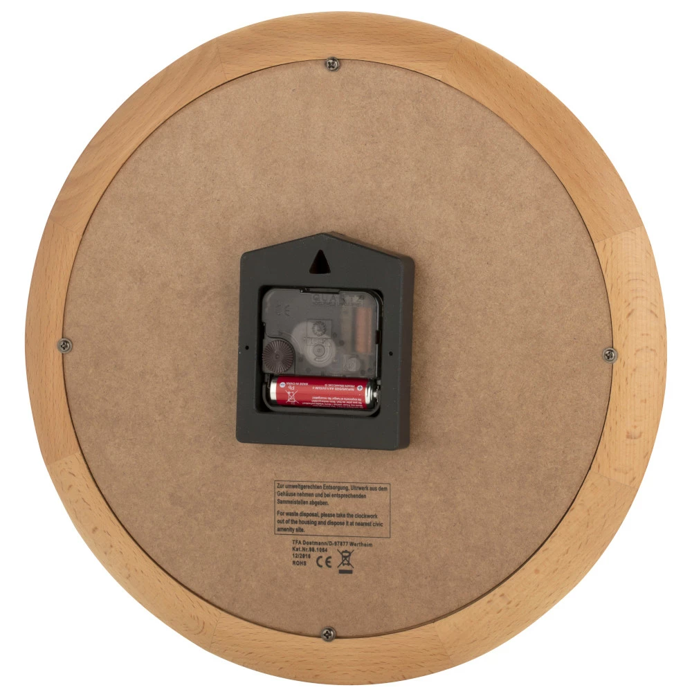 Die Funk-Wanduhr aus massiver Buche passt gut zu einem hellen, freundlichen Einrichtungsstil. Die Uhrzeit wird auf dem klassischen Zifferblatt mit klaren, gut lesbaren Zahlen angezeigt. Die Uhr hat eine wertige Echtglasabdeckung.