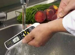 Der DualTemp Pro verfügt über beide Messmöglichkeiten, die im Bereich Lebensmittelüberwachung erforderlich sind: ein Einstichthermometer und ein berührungsloses Infrarot-Thermometer. Damit können Temperaturüberwachungen gemäß HACCP durchgeführt werden. Beide Messmethoden haben schnelle Ansprechzeiten und sind sofort einsatzbereit. Das Thermometer verfügt über Warnanzeigen, Min-Max-Speicher und ist sogar abwaschbar.