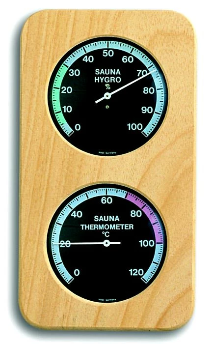 Das Messgerät ist speziell zur überwachung ihrer Sauna entwickelt worden. Dazu gehört ein hoher Messbereich beim Thermometer und eine farbige Einteilung der Skalen. Farbige Bereiche zeigen das optimale Saunaklima an. Die Messungen erfolgen durch ein Bimetall-Thermometer und ein Haar-Synthetik-Hygrometer.