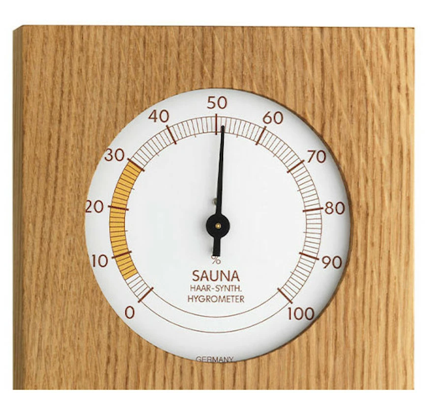 Mit diesem Kombinationsgerät können Sie die Temperatur und Luftfeuchtigkeit in Ihrer Sauna kontrollieren und somit für den höchstmöglichen Komfort sorgen. Die weiße Skala mit schwarzen Zeigern lässt sich sehr gut ablesen, der optimale Bereich ist farblich markiert. So erkennen Sie schnell, ob das richtige Klima in der Sauna herrscht.