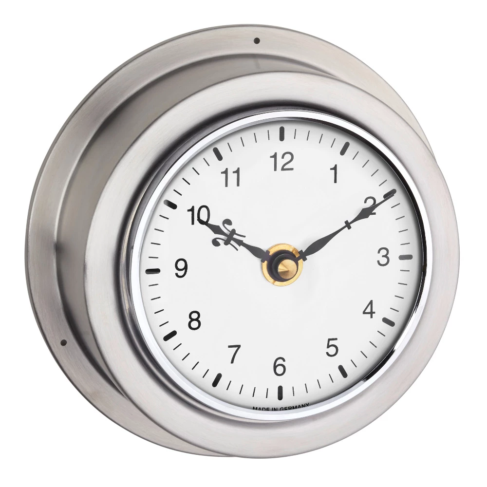 Die Maritim Wanduhr aus Edelstahl in klassisch maritimem Design passt zu den Wetterinstrumenten aus der gleichen Serie.