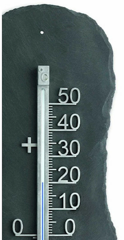 Durch die natürliche Beschaffenheit des Schiefers gibt es jedes Stück nur ein mal. Dekorieren Sie Ihren Eingangsbereich, den Balkon oder die Terrasse mit diesem originellen Schmuckstück. Auf dem klassischen Außenthermometer aus Metall können Sie schnell und komfortabel die Außentemperatur ablesen.