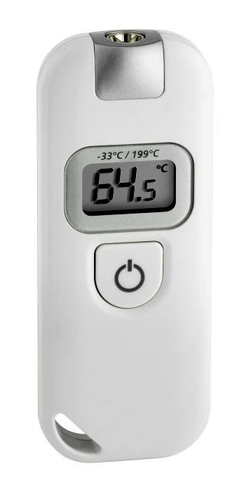 Mit dem “SLIM FLASH” Infrarot-Thermometer von TFA kann man schnell und einfach die Temperatur von Oberflächen messen, ohne sie zu berühren. Das Messobjekt wird nur anvisiert, der Knopf gedrückt, und in Sekundenschnelle erhält man das Ergebnis. Das handliche Gerät erinnert an einen USB-Stick und passt in jede Hosentasche oder an den Schlüsselbund. Die Einsatzmöglichkeiten von Infrarotthermometern sind vielfältig. Sie können damit Klima- und Heizungsanlagen kontrollieren, Kältebrücken und fehlerhafte Relais suchen oder das Bremssystem beim Auto checken. Im Haushalt überprüfen Sie die Temperatur von Babynahrung, Getränken, Badewasser, Frittier-Fett, Marmelade oder Schokoladenmasse. Das Gerät ist HACCP konform und die hygienische, kontaktfreie Temperaturermittlung ist gerade für den professionellen Einsatz im Lebensmittelbereich bestens geeignet. Berührungsloses Messen – möglich wird das durch die bewährte Infrarot-Technik. Die infrarote Strahlung, die jeder Körper mit einer Temperatur über dem absoluten Nullpunkt ausstrahlt, wird in ein elektrisches Signal umgewandelt, von einem Prozessor ausgewertet und anschließend auf dem Display angezeigt.