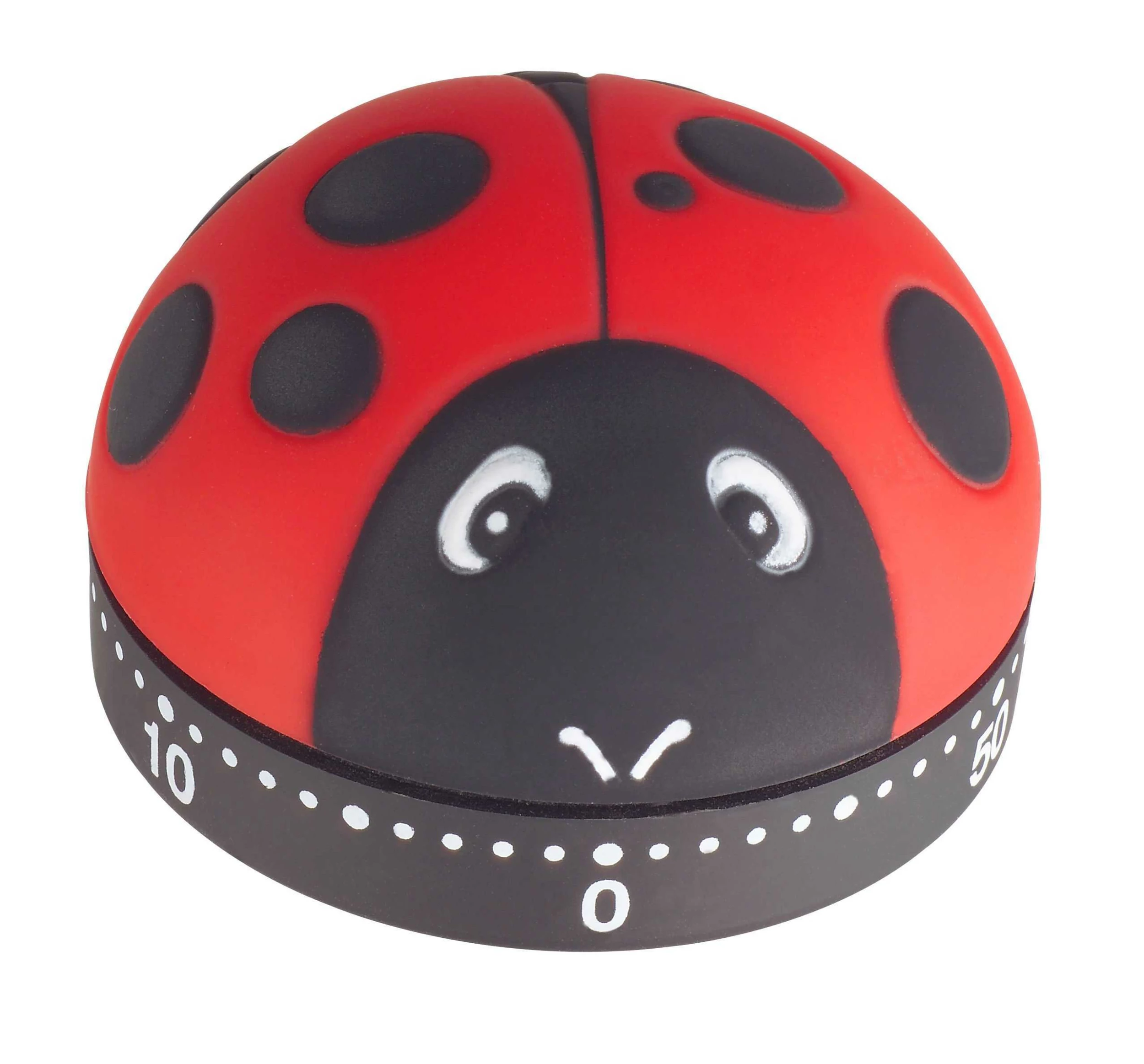 Wenn es beim Kochen mal um Minuten geht, leistet dieser lustige Marienkäfer-Timer gute Arbeit. Der praktische Küchenhelfer sorgt nicht nur für das perfekte Frühstücksei, er erinnert Sie auch an den Kuchen im Ofen oder die Nudeln im Topf. Bis zu 60 Minuten können Sie mit dem mechanischen Metall-Aufzugswerk stufenlos einstellen. Per Signalton werden Sie zuverlässig zum richtigen Zeitpunkt erinnert.