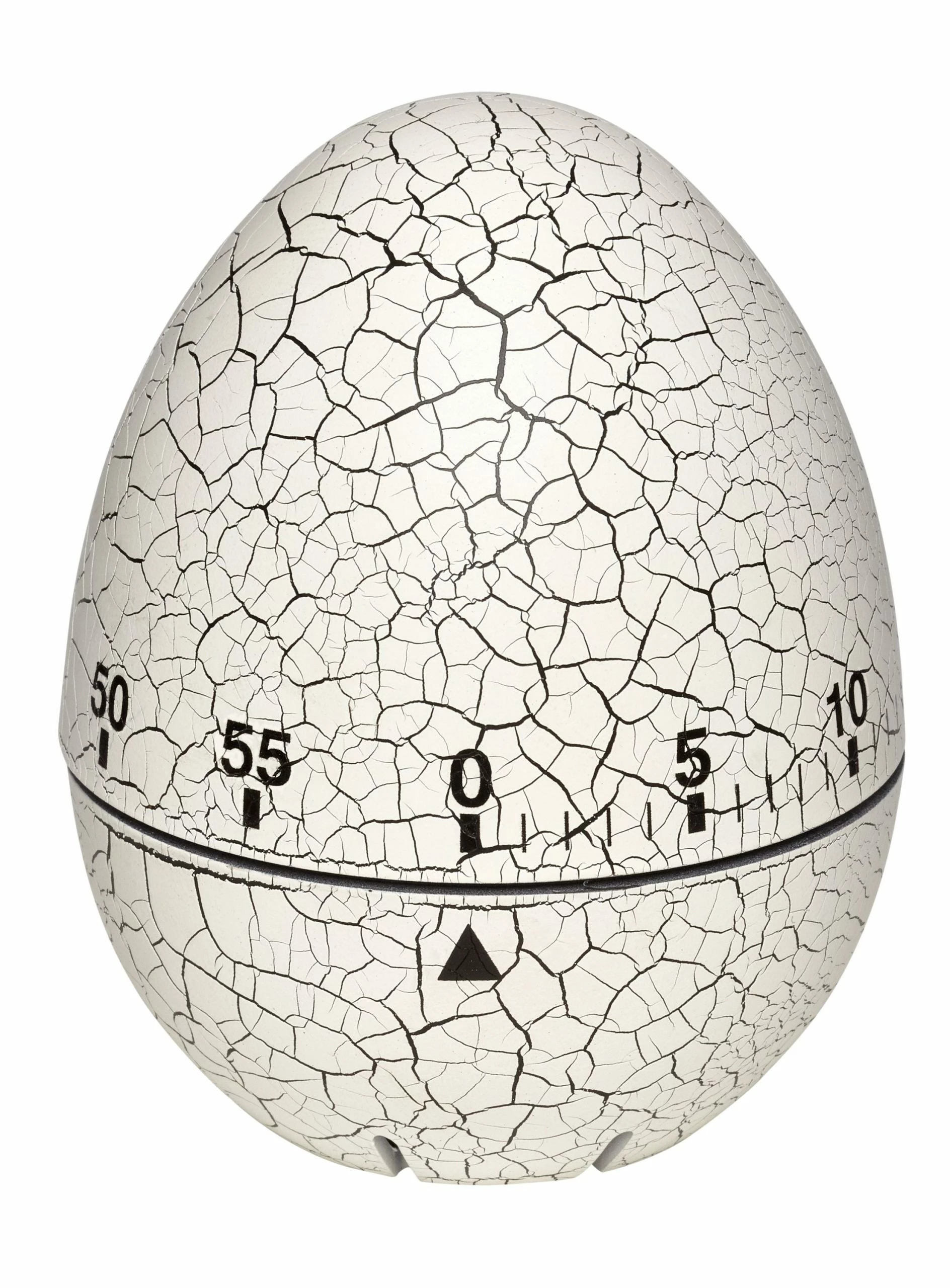 Wenn es beim Kochen mal um Minuten geht, leistet diese ausgefallene Eieruhr gute Arbeit. Der praktische Küchenhelfer sorgt nicht nur für das perfekte Frühstücksei, er erinnert Sie auch an den Kuchen im Ofen oder die Nudeln im Topf. Bis zu 60 Minuten können Sie mit dem mechanischen Metall-Aufzugswerk stufenlos einstellen. Per Signalton werden Sie zuverlässig zum richtigen Zeitpunkt erinnert. Die Craquelé-Lackierung mit den feinen Rissen erzeugt eine ausgefallene Optik.