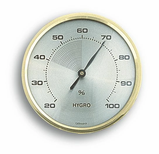 Schaffen Sie sich zuhause Ihr Wohlfühlklima! Das klassische Hygrometer mit Messingring misst die Luftfeuchtigkeit in Ihren Räumen. Wenn der Wert längere Zeit außerhalb der gekennzeichneten Komfortzone von 40 bis 60% liegt, können Sie reagieren. Denn eine zu feuchte Raumluft begünstigt die Entstehung von gefährlichem Schimmel. Aber auch eine zu trockene Raumluft kann unser Wohlbefinden in verschiedener Hinsicht beeinträchtigen. Haut und Atmungsorgane werden belastet und Infekte, Allergien und Asthma haben ein leichtes Spiel. Und Haustiere, Pflanzen, Holzböden, Antikmöbel, Musikinstrumente und Bücher brauchen ebenfalls die richtigen klimatischen Bedingungen. Das Gerät wird komplett in Deutschland gefertigt.