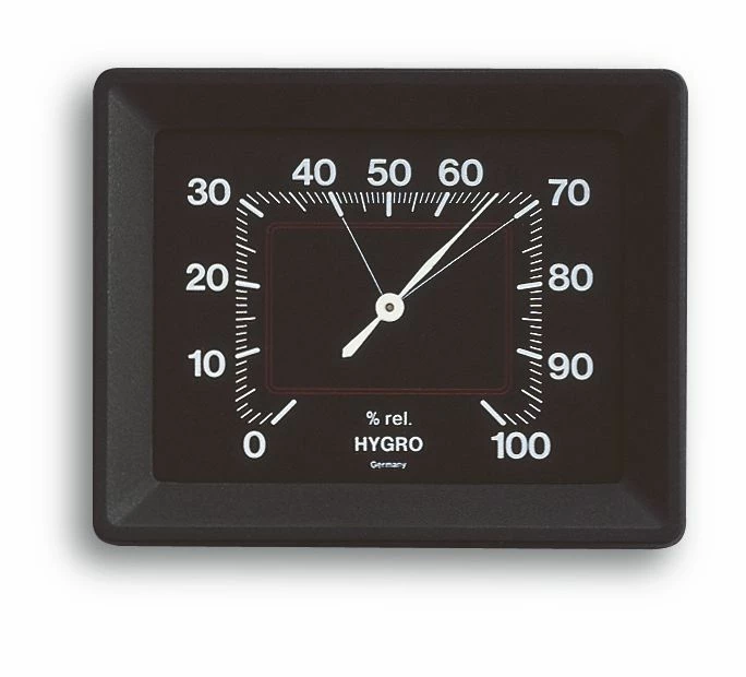 Schaffen Sie sich zuhause Ihr Wohlfühlklima! Das robuste Hygrometer aus Kunststoff misst die Luftfeuchtigkeit in Ihren Räumen. Wenn der Wert längere Zeit außerhalb der Komfortzone von 40 bis 60% liegt, können Sie reagieren. Denn eine zu feuchte Raumluft begünstigt die Entstehung von gefährlichem Schimmel. Aber auch eine zu trockene Raumluft kann unser Wohlbefinden in verschiedener Hinsicht beeinträchtigen. Haut und Atmungsorgane werden belastet und Infekte, Allergien und Asthma haben ein leichtes Spiel. Und Haustiere, Pflanzen, Holzböden, Antikmöbel, Musikinstrumente und Bücher brauchen ebenfalls die richtigen klimatischen Bedingungen. Das Gerät wird komplett in Deutschland gefertigt.