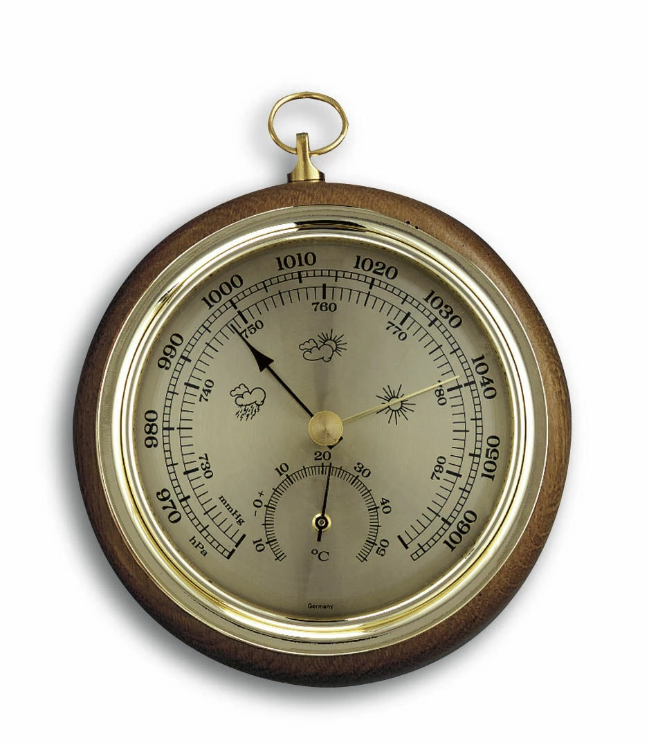 Das klassische Instrument aus massivem Holz besteht aus einem Barometer und einem Thermometer. Das Barometer misst den Luftdruck und ermöglicht Ihnen eine lokale Wettervorhersage. Steigt der Luftdruck, bessert sich das Wetter. Bei sinkendem Luftdruck müssen Sie mit schlechterem Wetter rechnen. Durch die Kontrolle der Innentemperatur schaffen Sie sich ein behagliches Raumklima und sparen Heizkosten. Das Gerät wird komplett in Deutschland gefertigt.