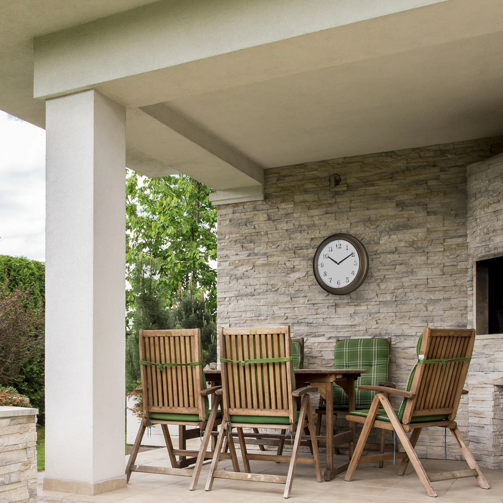 Durch das Gehäuse und den robusten Metallrahmen eignet sich die Outdoor Wanduhr perfekt für den Außenbereich.