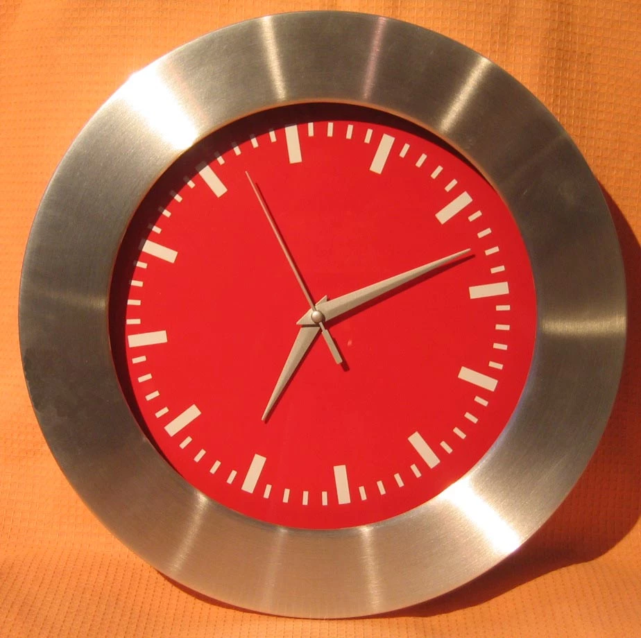 Diese Wanduhr mit großem Ziffernblatt aus solidem, gebürstetem Aluminium verfügt über ein genaues Quarzuhrwerk die Scheibe ist aus echtem Glas. Die Wanduhr ist ideal für zu Hause, das Büro, den Eingangs- oder Empfangsbereich und als Geschenk. Sie können die Wanduhr mit schwarzem oder rotem Ziffernblatt bestellen.
