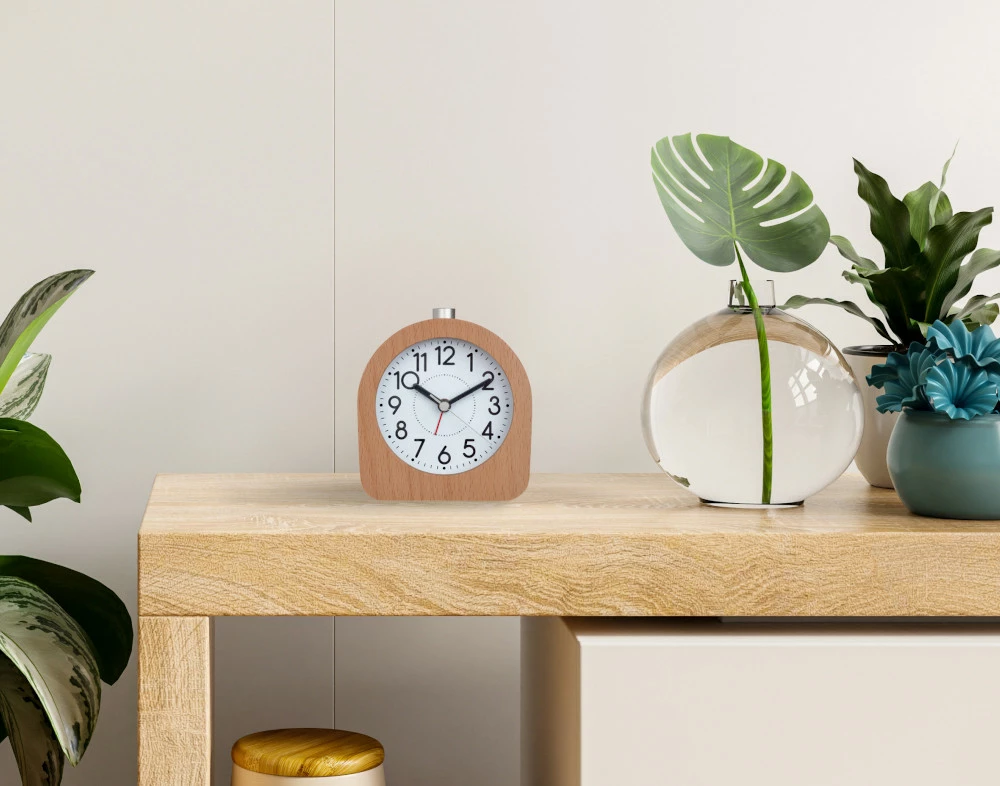 Dieser analoge Wecker mit einem Rahmen aus massivem Buchenholz passt zu einem natürlichen Wohnambiente. Auf Tastendruck wird das runde Ziffernblatt beleuchtet und macht es auch im Dunklen sehr gut ablesbar. Das Sweep-Uhrwerk läuft besonders ruhig und stört so nicht Ihren Schlaf. Der Weckalarm holt Sie pünktlich aus dem Schlummer. Und wenn Sie einmal nicht gleich aufstehen möchten, können Sie sich mit der Snooze-Funktion ein paar Minuten später noch mal wecken lassen.