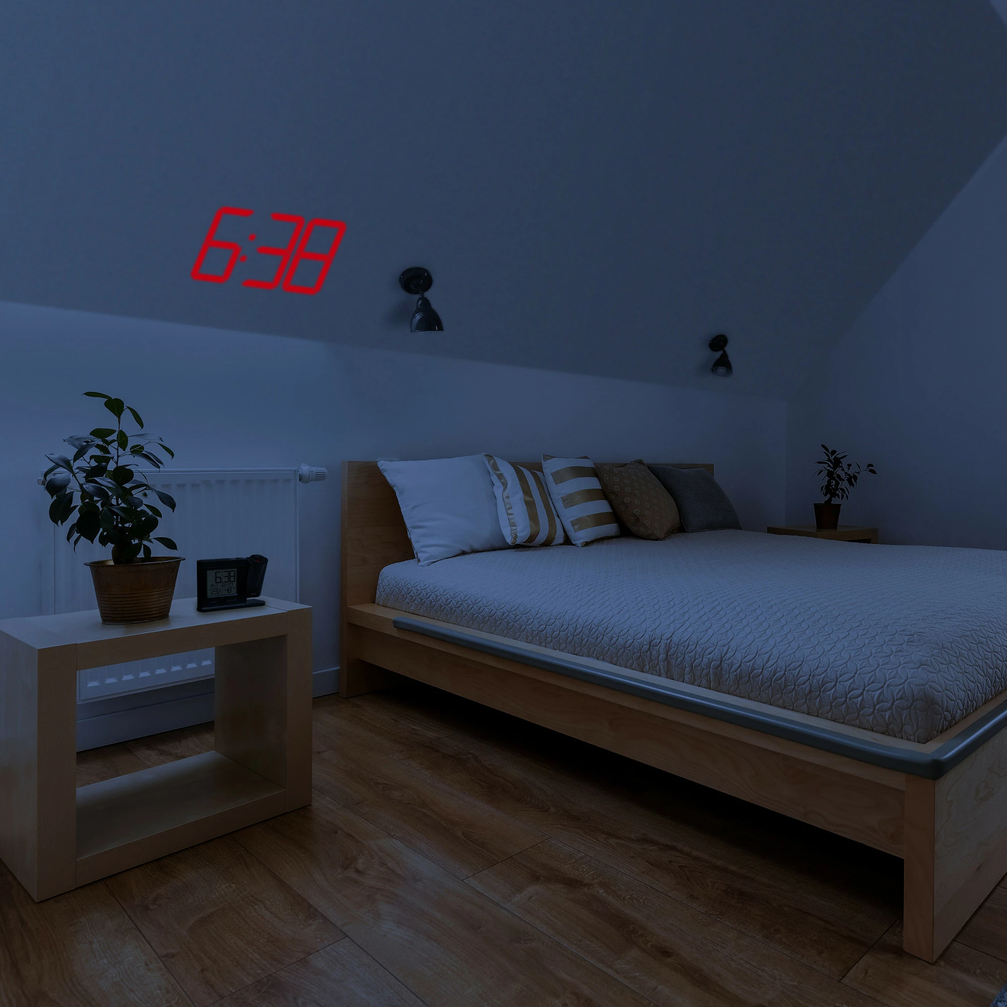 Das können wir zwar nicht versprechen, aber wir versuchen es Ihnen mit diesem Projektionswecker leichter zu machen. Zumindest können Sie die Uhrzeit bequem im Liegen von der Zimmerwand oder Zimmerdecke ablesen und sehen, wann es wirklich Zeit wird um Aufstehen