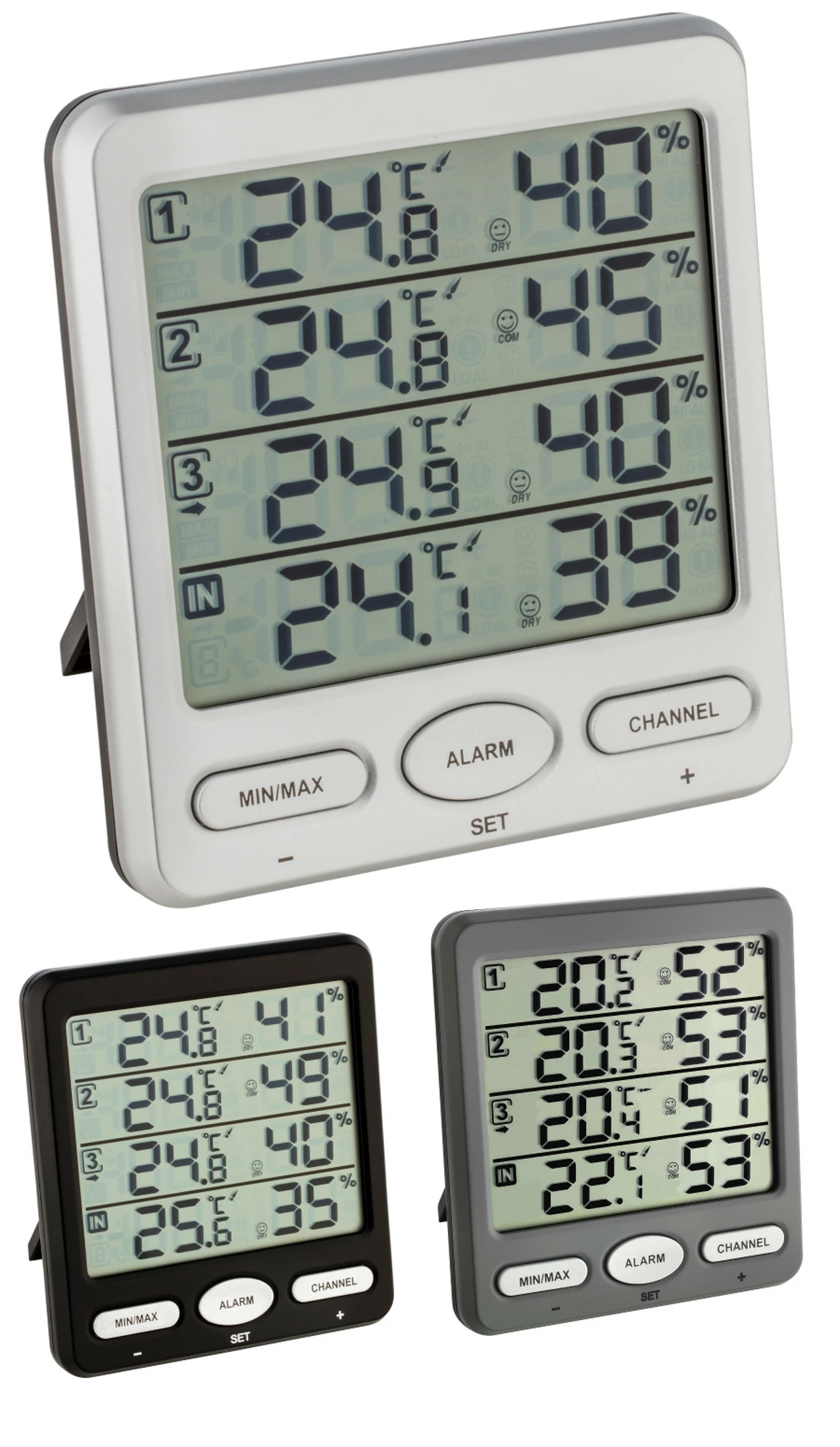 überwachung von Temperatur und Luftfeuchtigkeit in bis zu 4 Räumen