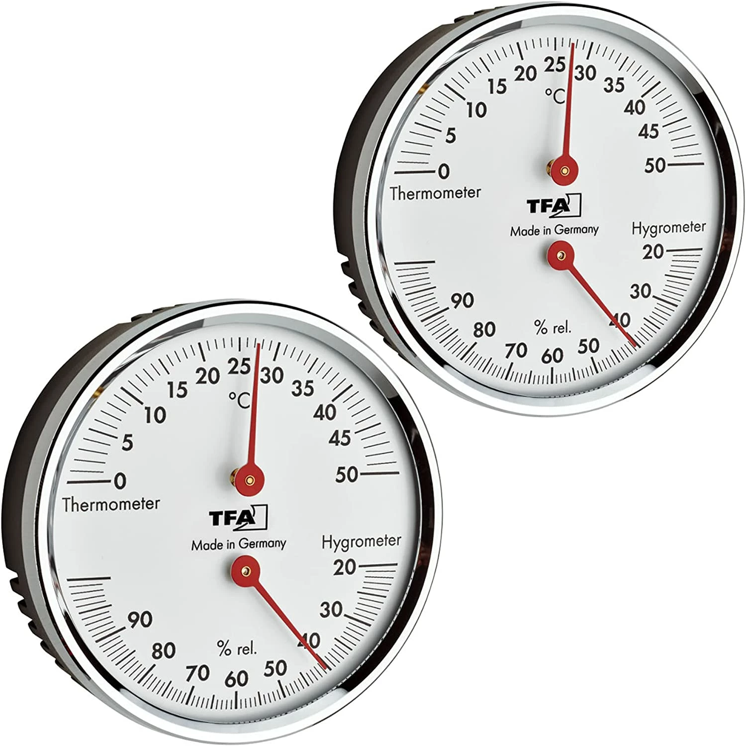 Das kompakte Thermo-Hygrometer mit verchromtem Messingring ist ein ideales Instrument zur Überwachung des Raumklimas. Temperatur und Luftfeuchtigkeit können Sie einfach im Blick behalten und durch gezieltes Heizen und Lüften regulieren. So schaffen Sie sich ein behagliches und gesundes Wohnklima und sparen sogar Heizkosten.